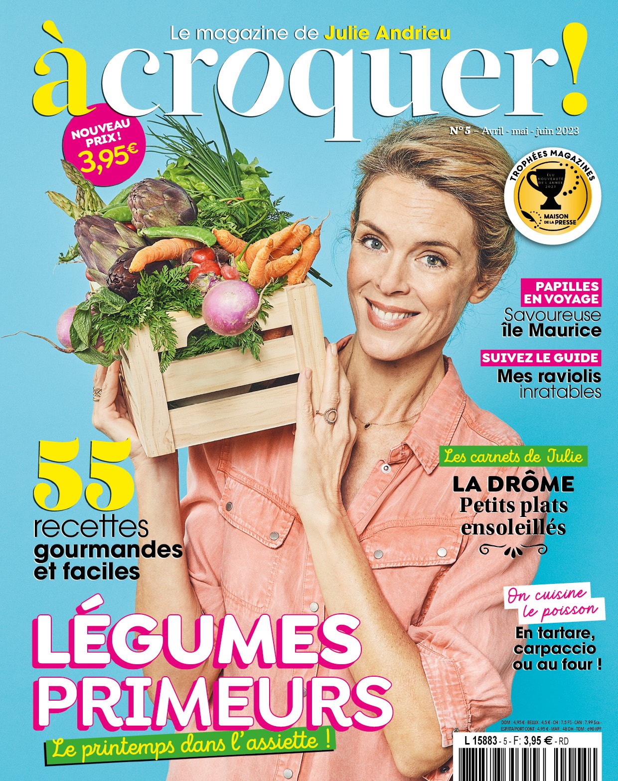 Merci d’avoir élu “à croquer” comme meilleure nouveauté. Nous sommes très ƽers et touchés par ceǀe distinction, qui valorise notre travail et notre passion pour la presse. Nous remercions Julie Andrieu pour sa créativité et sa fraîcheur qui permet à ce magazine d’exister et de renouveler le genre dans la presse culinaire, pleine de gourmandise... Grâce à votre soutien, “à croquer” à pu bénéƽcier d’un lancement et d’une belle visibilité. Le succès du titre ne serait pas possible sans votre réseau. Nous aimons raconter des histoires et celle-ci, culinaire, comme un bon plat, est partagée avec vous ! Nous vous remercions chaleureusement. Inès Soto (rédactrice en chef) et Samuel Gouǀebelle (directeur de la publication)